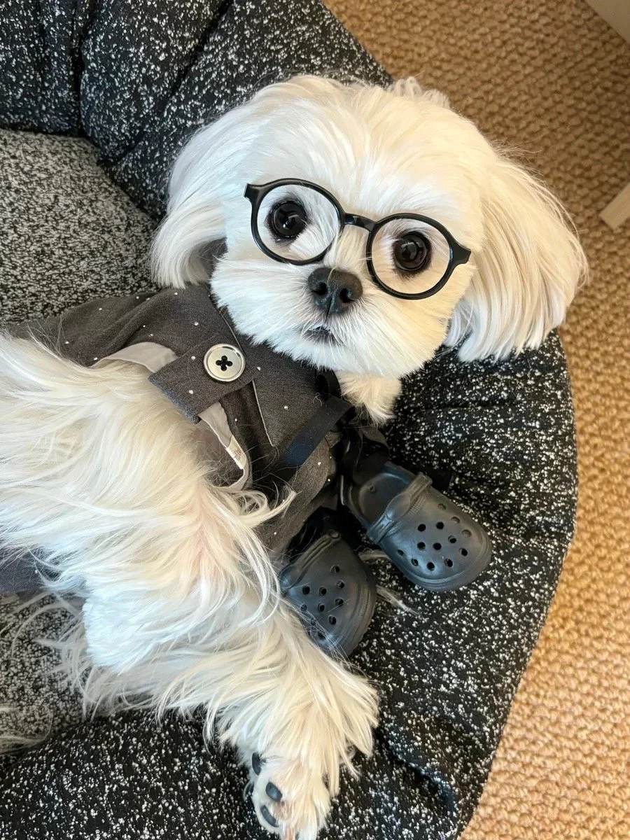 Let your pet shine with the timeless charm of the Celestial Whisper Suit. Tailored in an elegant charcoal grey with subtle shimmer detailing, this piece blends classic tailoring with starlit sparkle. Accented with a sleek black bow tie and polished buttons, it’s the perfect statement outfit for formal evenings, events, or upscale city strolls.