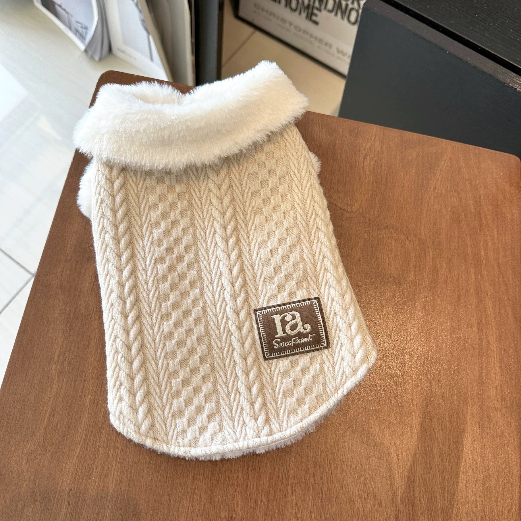 A luxurious blend of warmth and style. Designed in a chic milky mocha tone with a soft fleece interior, this sweater offers superior insulation while keeping your furry friend looking effortlessly elegant. Perfect for cold-weather walks and cozy indoor lounging.