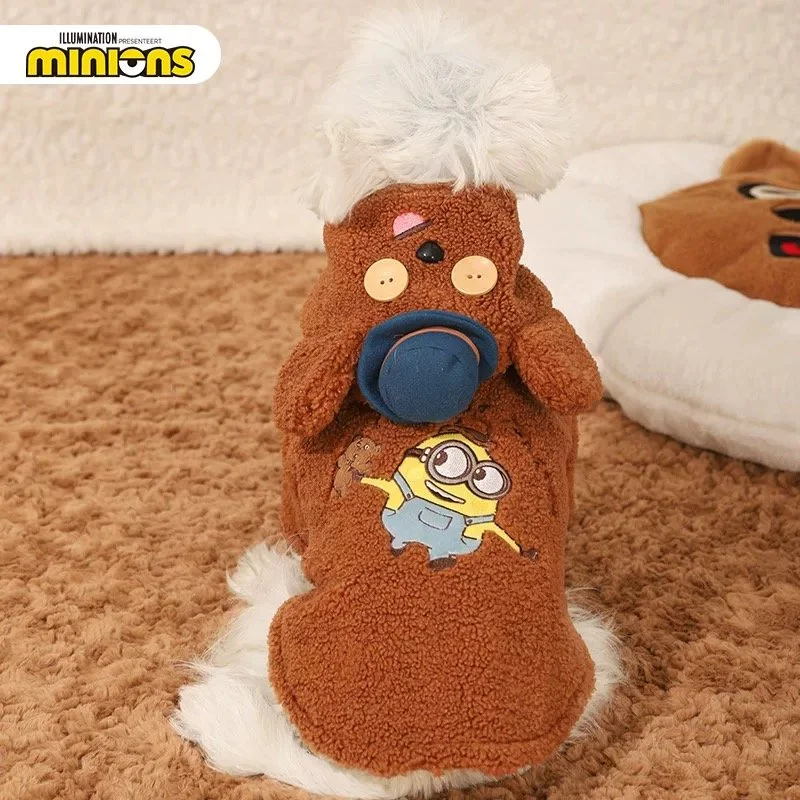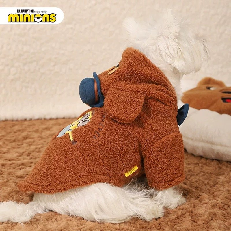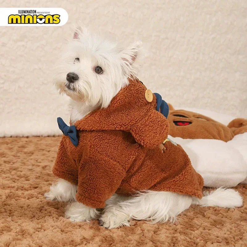 Dress your pup in this adorable Minions bear hoodie! Made with warm fleece and cute details like bear ears, a blue bow tie, and Minions print.