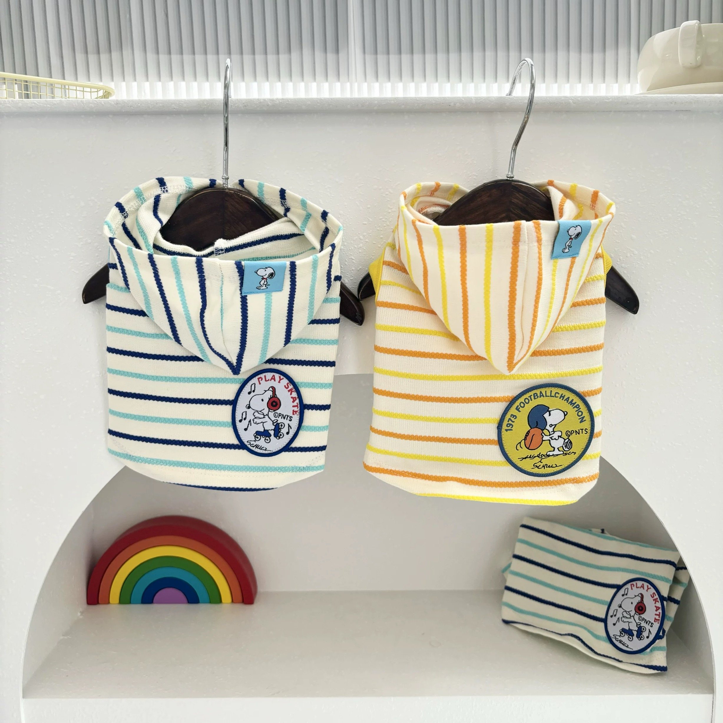 Bring playful retro vibes to your pup’s wardrobe with the Snoopy Varsity Striped Hoodie. Featuring bold varsity stripes and iconic Snoopy patches, this cozy hoodie blends fun cartoon nostalgia with sporty streetwear style. Designed for comfort and warmth.